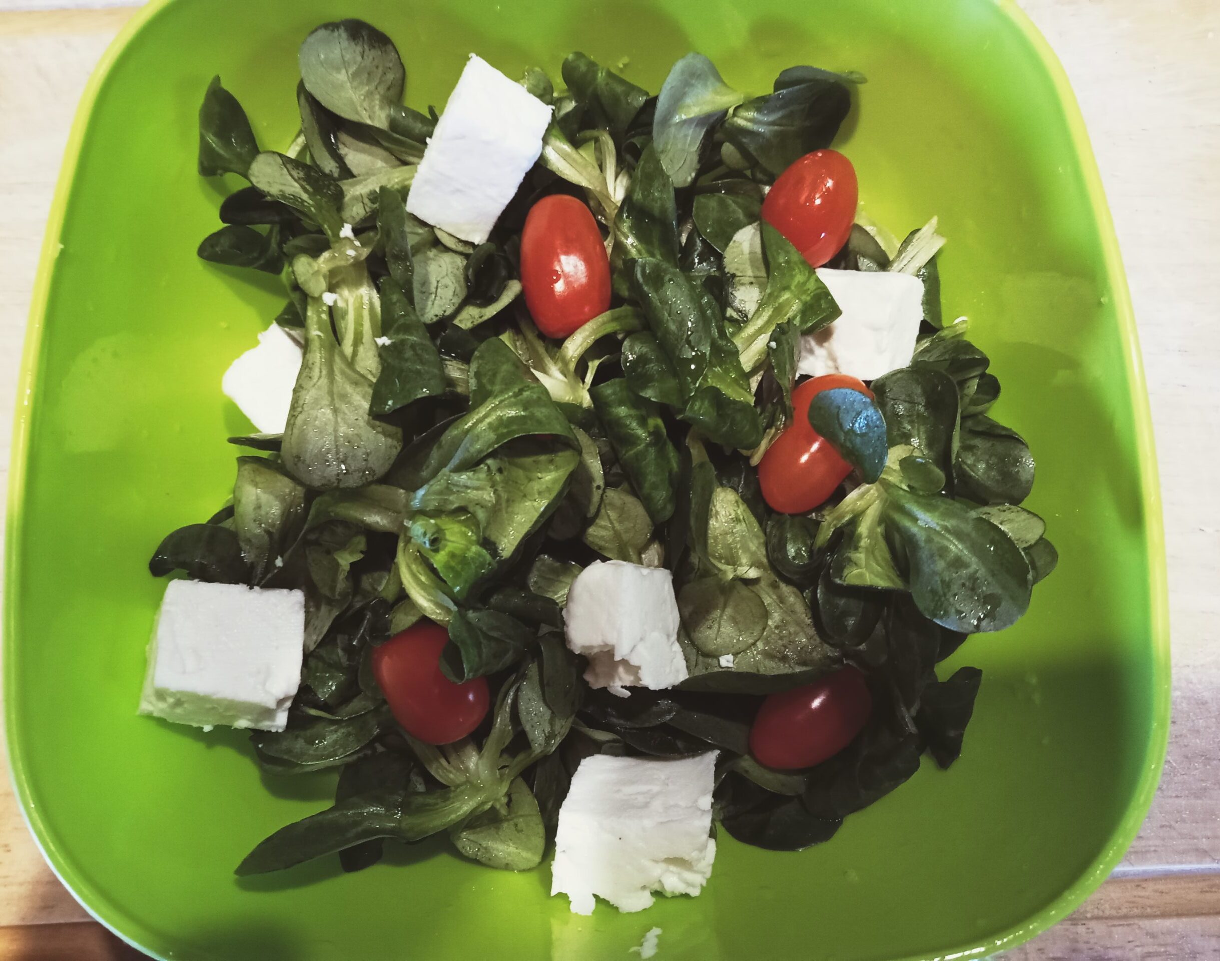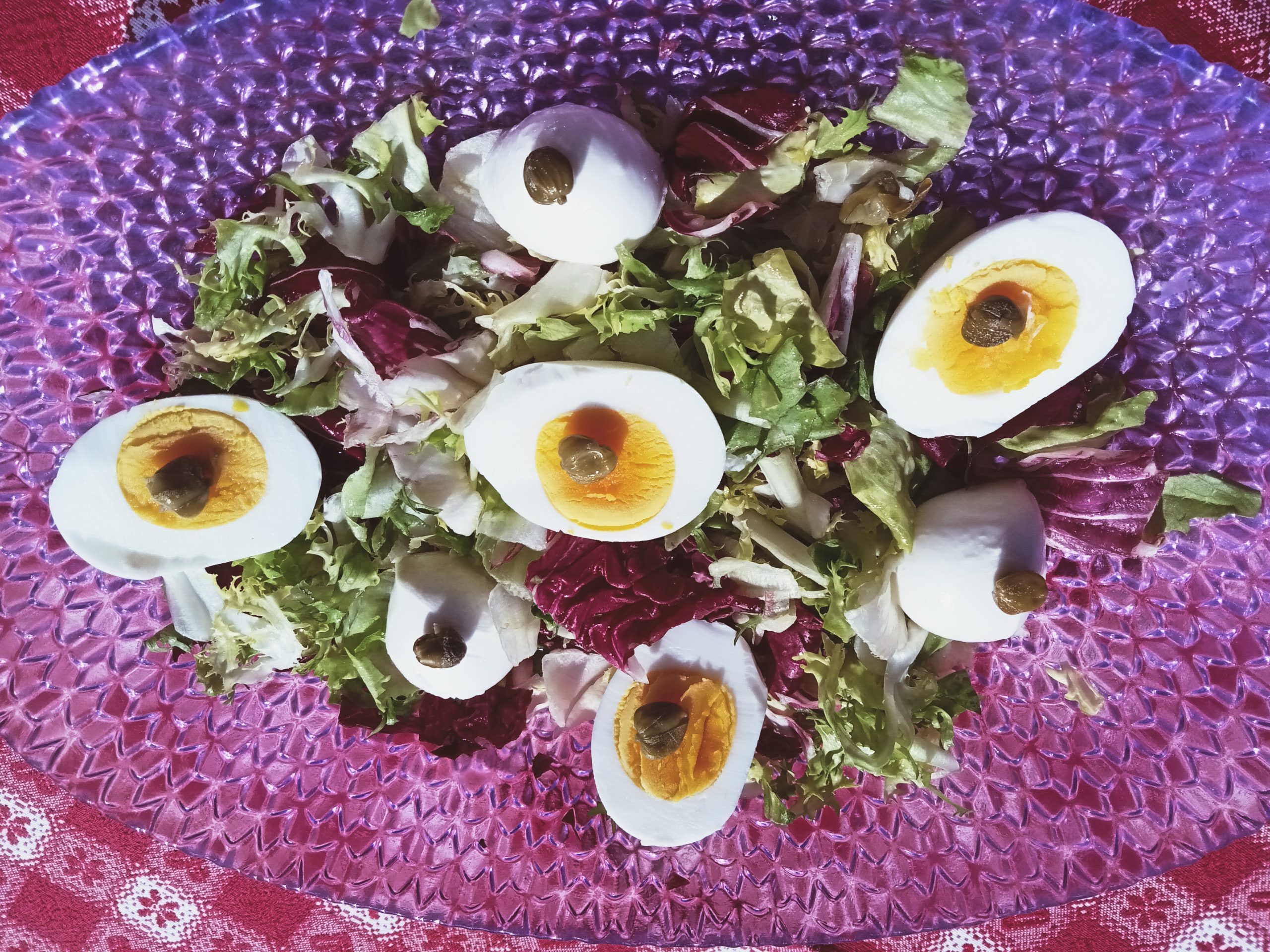 – Insalata mista con uova sode, mozzarelline e capperi, olio, aceto